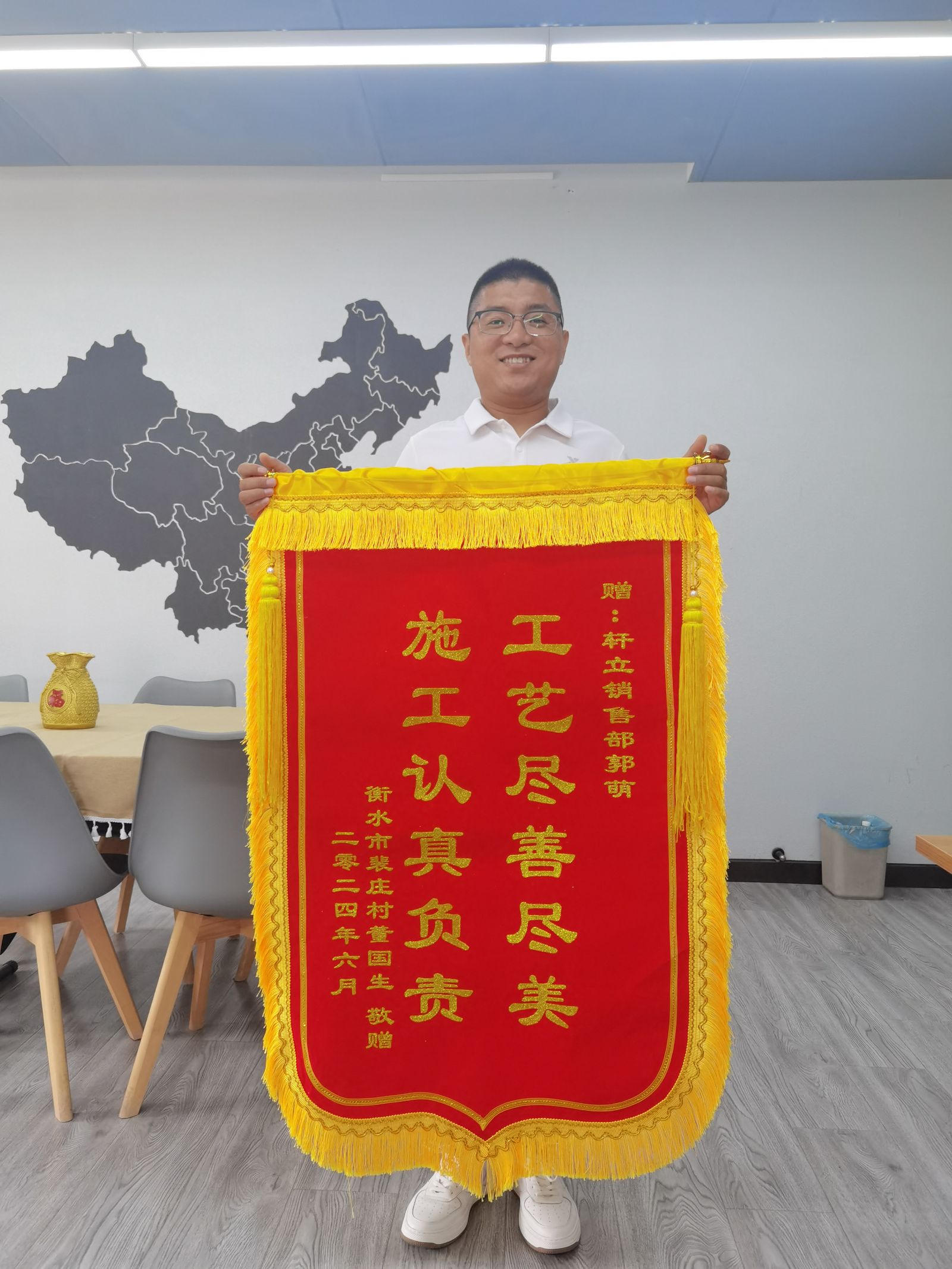 衡水故城縣輕鋼別墅竣工,業(yè)主董先生贈(zèng)予軒立房屋錦旗以表贊譽(yù)