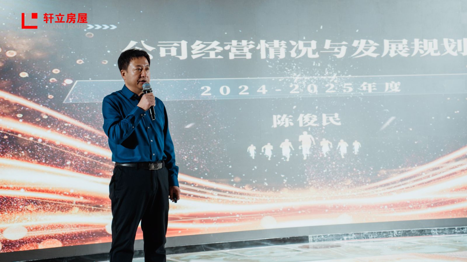 年會伊始,公司董事長陳俊民陳總發(fā)表了熱情洋溢的講話。他首先對2024年的工作進(jìn)行了全面回顧,肯定了全體員工在過去一年中的辛勤付出和取得的顯著成績。陳總表示,軒立房屋能夠穩(wěn)步前行,離不開每一位員工的努力和貢獻(xiàn)。隨后,他展望了2025年的發(fā)展前景,提出了新的目標(biāo)和愿景,激勵大家在新的一年里繼續(xù)攜手共進(jìn),共創(chuàng)輝煌。