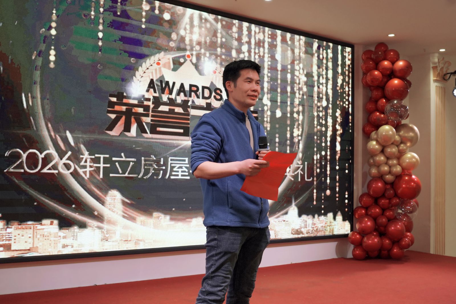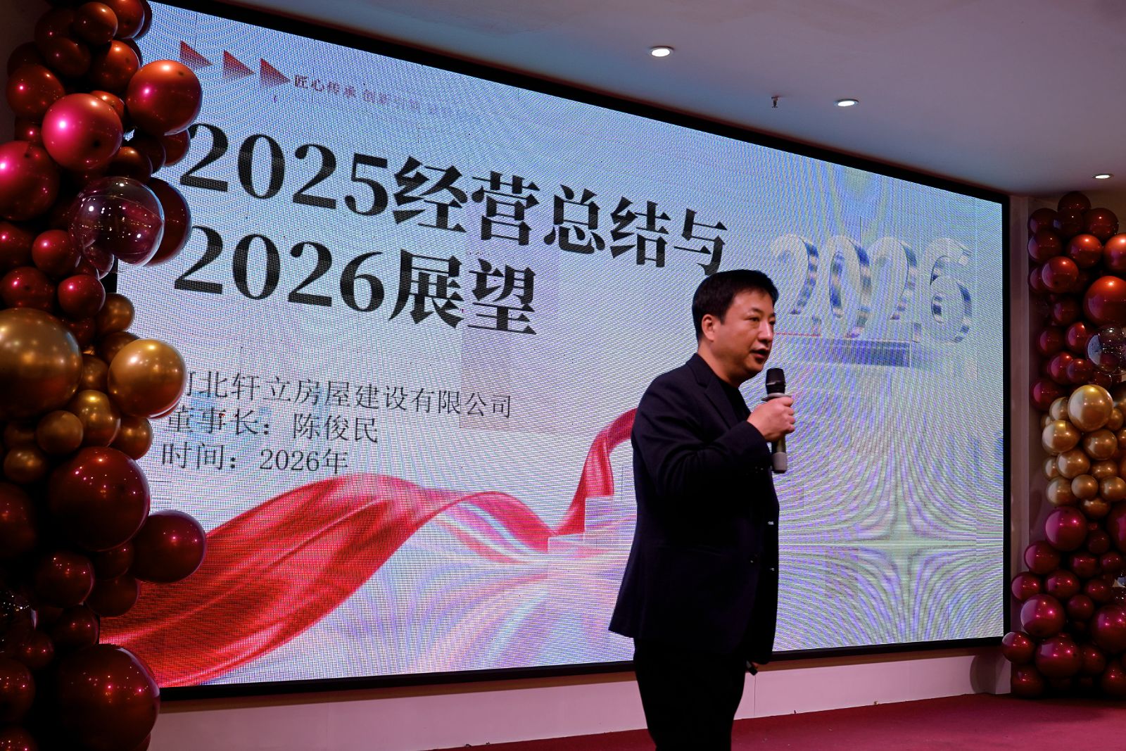 年會開始,軒立房屋董事長陳俊民陳總率先登臺發(fā)表致辭。他回顧了公司在2025年取得的堅(jiān)實(shí)成就,對各條戰(zhàn)線上員工的辛勤付出給予充分肯定。展望2026,公司將持續(xù)深耕自建房領(lǐng)域、勇于突破創(chuàng)新,號召全體軒立人凝心聚力、并肩前行,共同開啟高質(zhì)量發(fā)展的嶄新篇章。