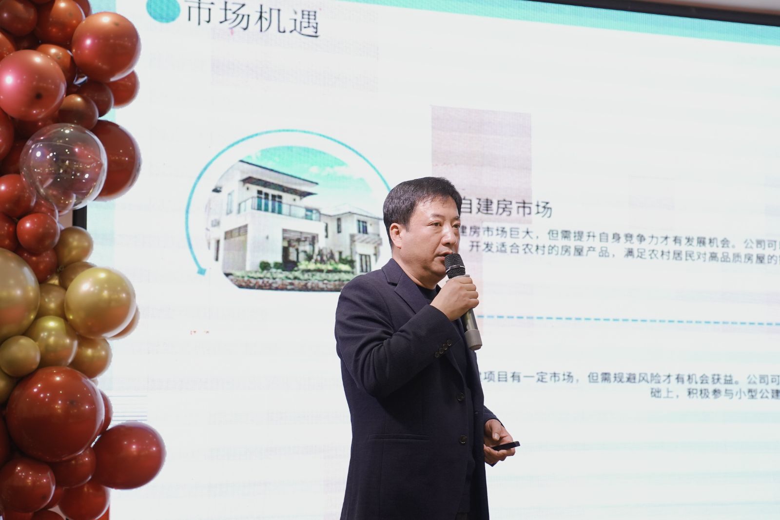 軒立房屋總工程師康海波康總隨后登臺,就公司過去一年在技術(shù)研發(fā)與工程實(shí)踐方面取得的突破與成果,向全體員工做了系統(tǒng)匯報(bào)與分享。