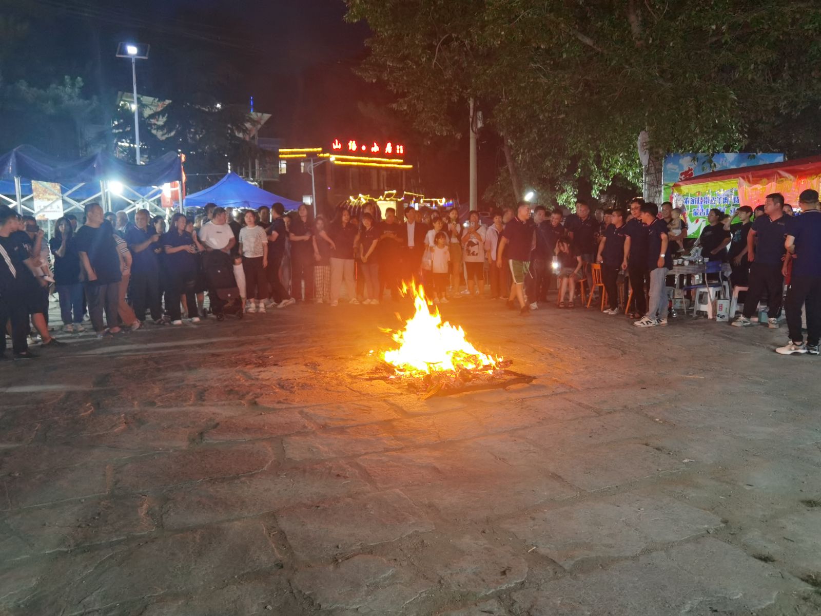 大家手拉著手,圍著篝火跳了起來?,F(xiàn)場(chǎng)氣氛推至高潮,歌聲笑聲回蕩在夜空里。